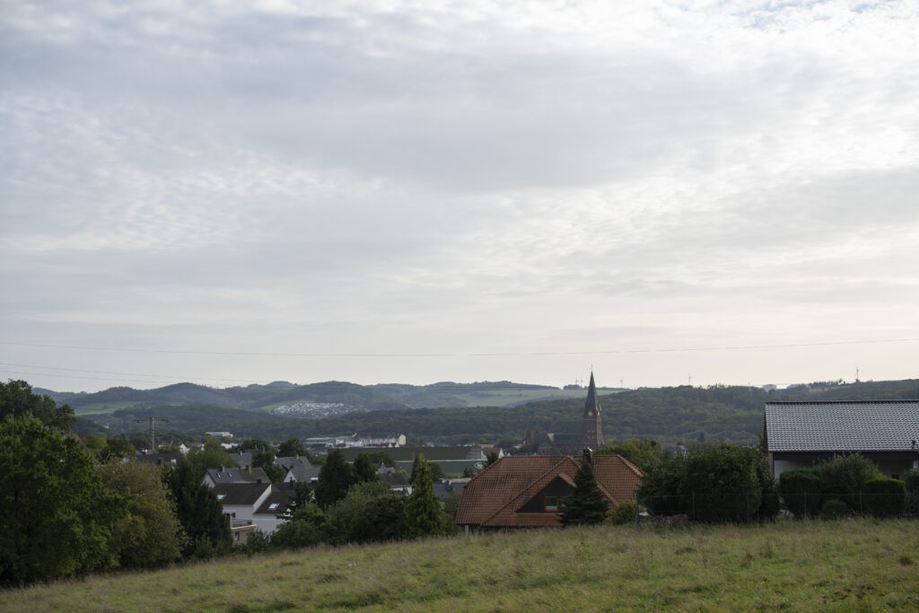 Vom Totenberg aus betrachtet, macht diese Stadt einen idyllischen Eindruck. Das Land der 1000 Berge wäre eigentlich die optimale Kulisse für einen Heimatfilm der 1950-er Jahre; wären da nicht die Windräder, die am Horizont ihre Kreise ziehen.