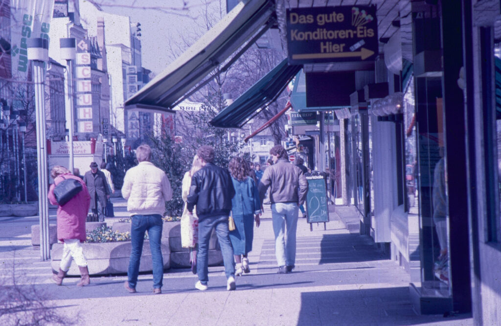 In der Fußgängerzone wird das Zurückschauen durch die Blickrichtung ergänzt. Das Angeschaut-Werden ist hier zentral.