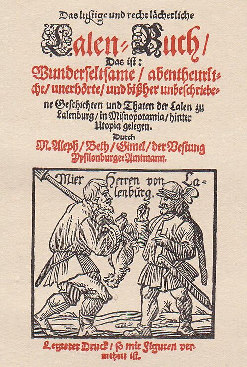 Die Schildbürger, wohnhaft im fiktiven Ort Schilda, sind Hauptakteure einer ganzen Reihe von kurzen Erzählungen, den Schildbürgerstreichen. Eine Sammlung bzw. ein Volksbuch mit Schildbürger-Schwänken zum Inhalt erschien 1597 erstmals unter dem Titel Das Lalen-Buch. Wunderseltzame / Abentheurliche / unerhörte / und bißher unbeschriebene Geschichten und Thaten der Lalen zu Lalenburg. Bekannt wurde die zweite Ausgabe von 1598 mit dem Titel Die Schiltbürger; mehrere Autoren sind als ihr Urheber im Gespräch, u. a. Friedrich von Schönberg. Wie der Till Eulenspiegel oder der Faust geht auch das Lalebuch nicht auf eine fremdsprachige Vorlage zurück. Vielmehr wurden Schwänke und Erzählungen, die im Umlauf waren, aufgegriffen und, kunstvoll mit vielen gelehrten Andeutungen gespickt, zu einem Ganzen verarbeitet.